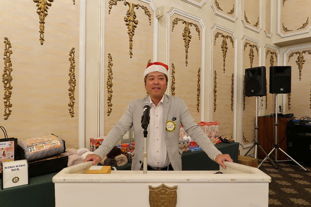 クリスマス家族例会(2025年12月17日) 2025.12.172025.12.27会長挨拶 吉田 壮司さんクリスマス家族例会日時:2025年12月17日(水)場所:国際ホテル宇部にて司会 親睦委員 長谷川 寛朗さん乾杯挨拶 西村 雄一さんじゃんけん大会ゲーム(ストップウォッチ10秒止め)万歳三唱 中原 斎香利さん