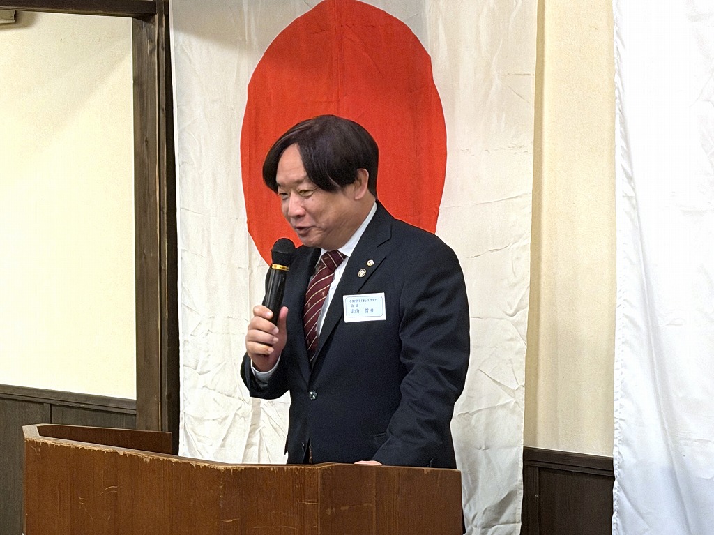 新年例会(2026年1月7日) 2026.01.072026.01.19開会挨拶 会長 吉田 壮司さん来賓挨拶 小野田ライオンズクラブ 会長 秋山 哲雄様皆出席者表彰 12名年男の一言 高原 靖定さん年男の一言 畑 史善さん乾杯 小野田青年会議所 理事長 吉村 公明様福引万歳三唱 次年度会長 中原 斎香利さん閉会挨拶 次々年度会長 砂川 新平さん